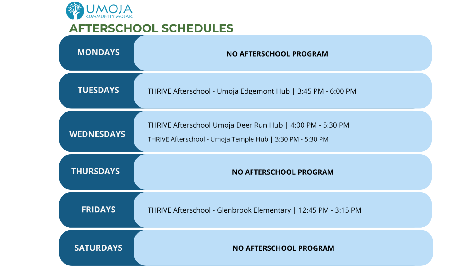THRIVE Afterschool offers free, welcoming programs for children in Grades 1–6, running on various days in communities across the city to meet families where they are. Each program day includes active games, creative crafts, reading time, and group activities that support learning, confidence, and connection. Free snacks are provided! THRIVE creates safe, inclusive spaces where children can build friendships, develop skills, and truly belong.